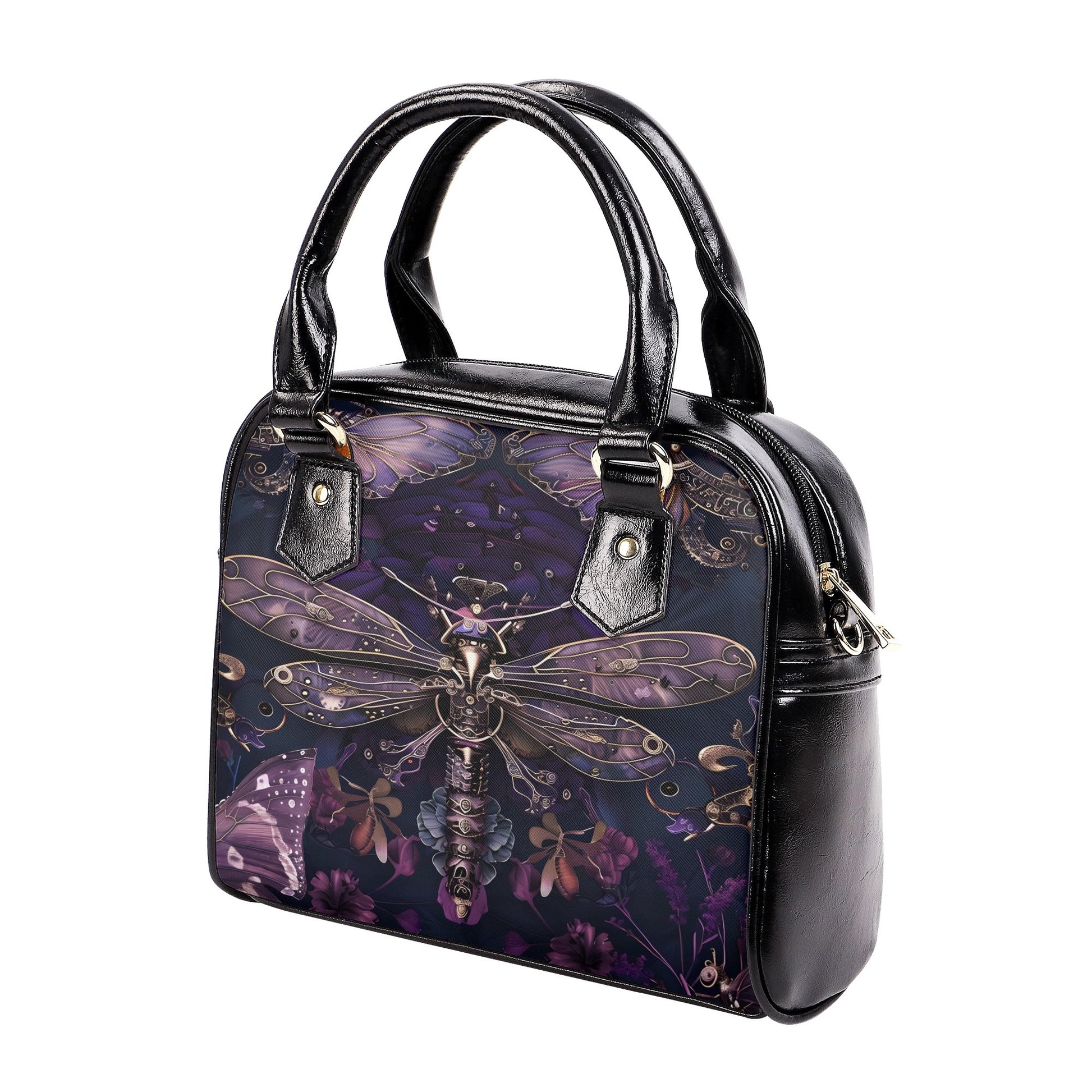 Steampunk Purple Dragonfly Handbag - Gothic-Inspired PU Leather Crossbody Tote