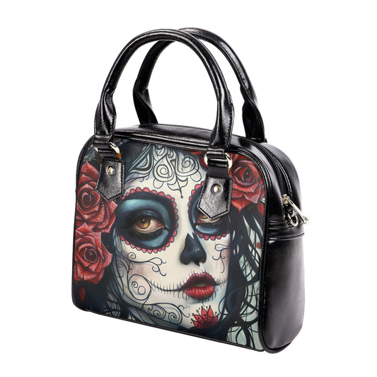Rose Sugar Skull Girl Handbag – Gothic PU Leather Shoulder Bag with Day of the Dead Art