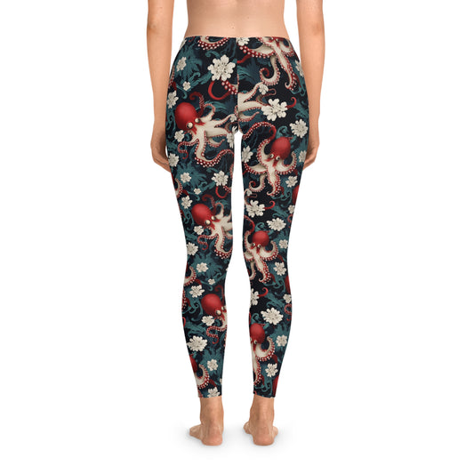Octopus Floral Leggings – Unique Floral Print Yoga Pants, Fun Gift for Marine Biologist